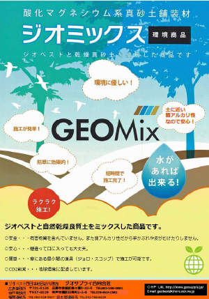 当社は、2013年2月1日(金)・2日(土)に広島市の中小企業会館総合展示場で開催されます「第11回ビジネスフェア中四国2013」に出展致します。 この展示会は、中四国地域最大級の消費財見本市です。 当日は、酸化マグネシウム系固化材を使用した下記の環境配慮型商品の紹介をさせていただく 予定です。 ① 酸化マグネシウム系土舗装固化材「ジオベスト」(20kg) ② ジオベストと乾燥させた真砂土を一定の割合で混合したプレミックス商品・真砂土舗装材「ジオミックス」(20kg)・(10kg) ③ 建設発生土、浚渫土、汚水ヘドロ等の固化を目的とした商品「エコロック」 ④ 雑草防止「防草テープ」(道路等の舗装と構造物の空隙に雑草が繁茂するのを抑止するテープ状の防草目地材) ⑤ポーラメントBP ★ご来場のおりには、是非当社ブースにお立ち寄り下さい。