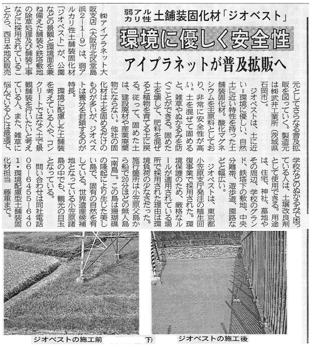 2005年から発売を開始しました酸化マグネシウム系土舗装固化材「ジオベスト」。